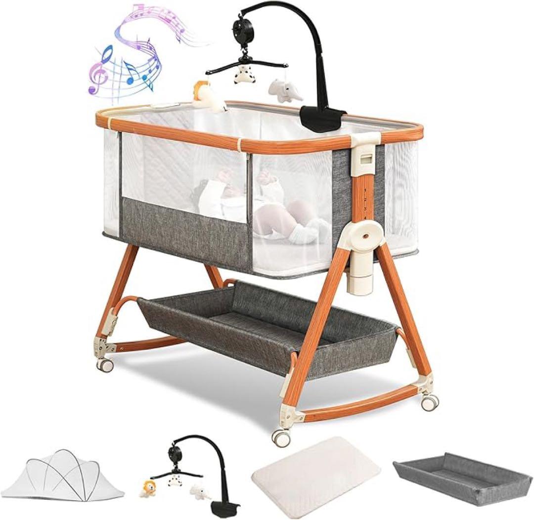 HZDMJ ベビーベット ベージュ 美品 2024年11月に購入し、新生児の時2ヶ月ほど使用しましたが、それ以降は全く使用せず自宅保管しておりました。公式ストアではカーキという色で表現されておりますが、実際の色味はベージュかと思います。特筆する汚れもなくとても綺麗な状態です。付属品の蚊帳とベッド固定ロープは未使用です。マットレスの上に別売り防水シーツとバスタオルを敷いて使用していたので、マットレスは直接肌には触れていません。付属の収納袋入れて発送させていただきます。何卒よろしくお願いいたします。