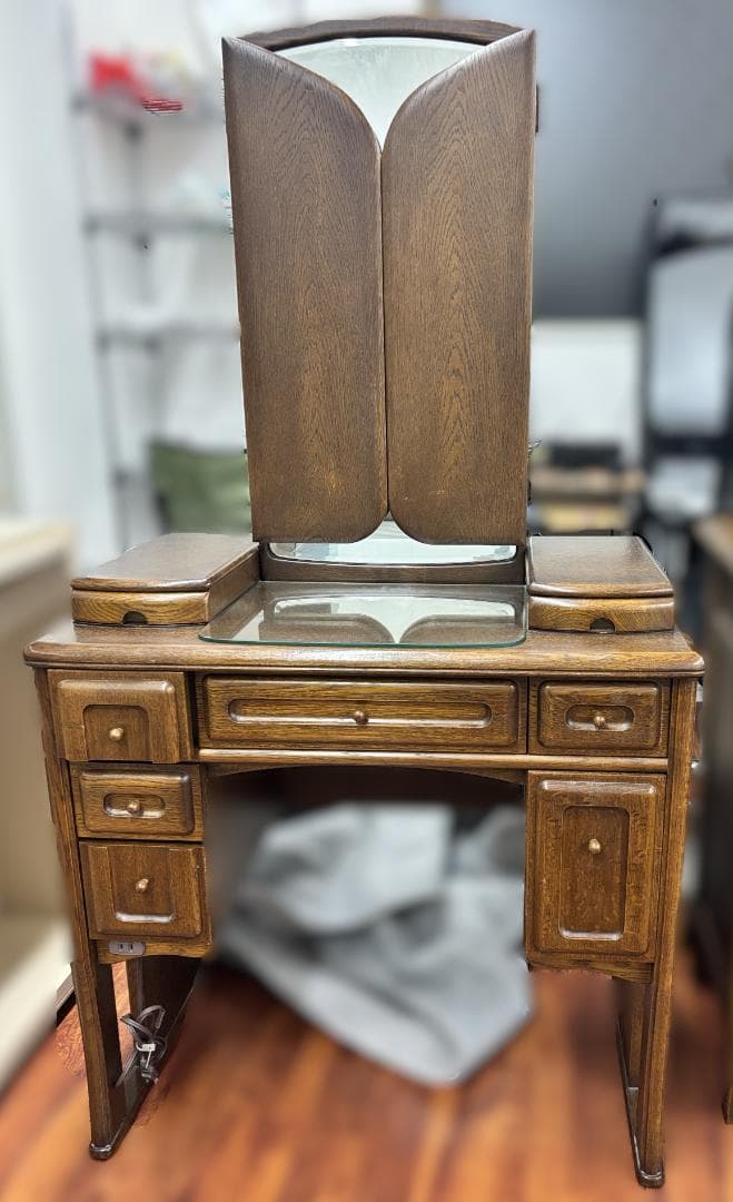 松本民芸 ミラー付きドレッサー 鏡台 チェスト 松本民芸家具 角型三面鏡 ミラー 中古 本棚 古民家 和風 松民 高級家具